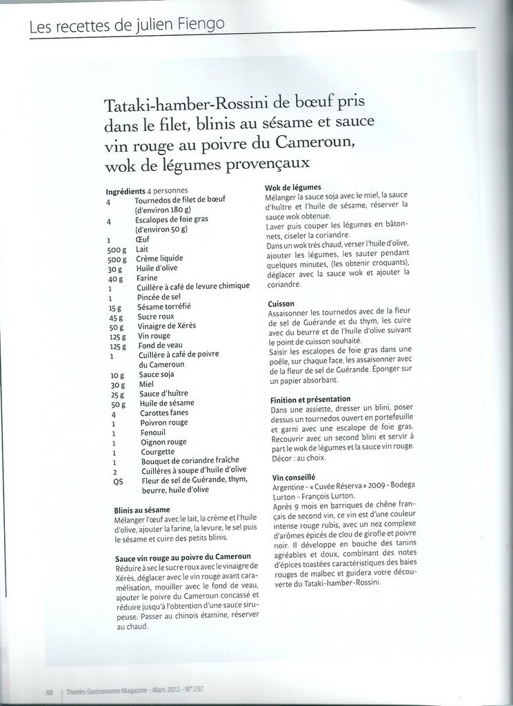 Voici un belle article sur un magazine dedié à la gastronomie parru en Mars 2012